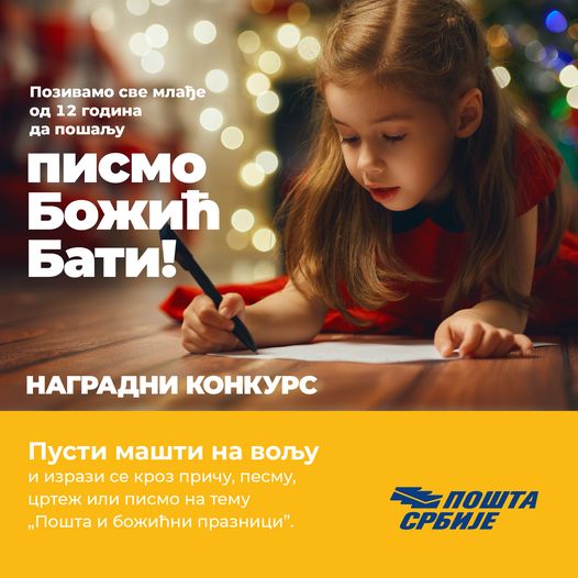 Јавно предузеће „Пошта Србије”, Београд, расписује ликовни и литерарни конкурс под називом „Писмо Божић Бати” намењен деци узраста до 12 година која живе у Републици Србији.