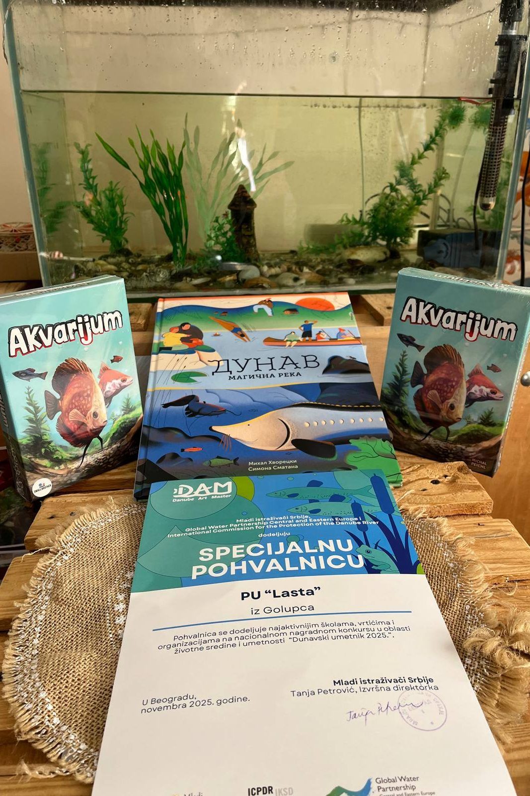 За малишане су стигле и награде у виду едукативних игрица и књига на тему Дунава- као магичне реке, а ту су дипломе, захвалнице и специјалне похвалнице за учешће: припремној групи, ментору и предшколској установи за подршку и учешће деце на националном такмичењу у области животне средине и уметности „Дунавски уметник 2025“.